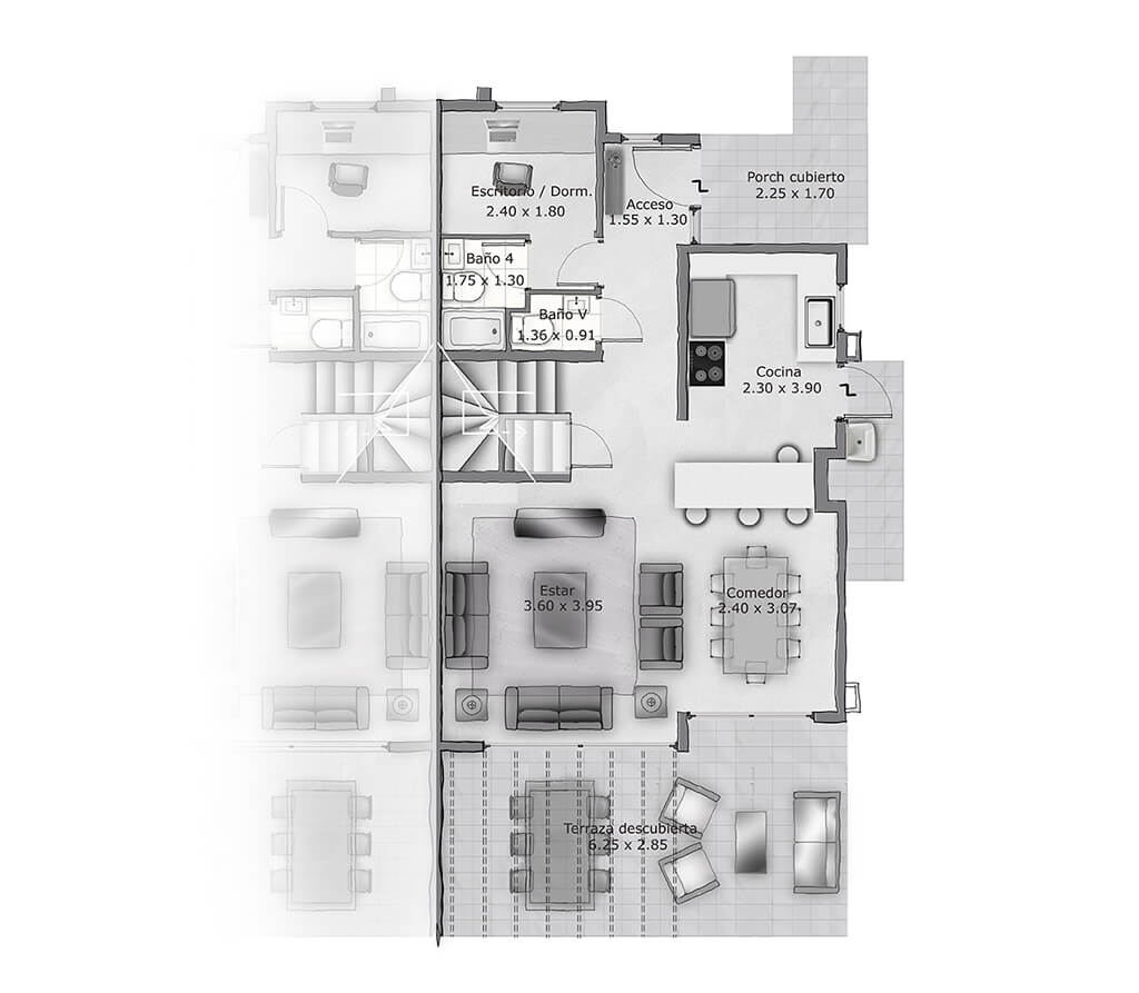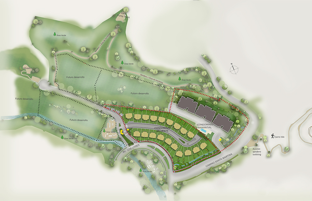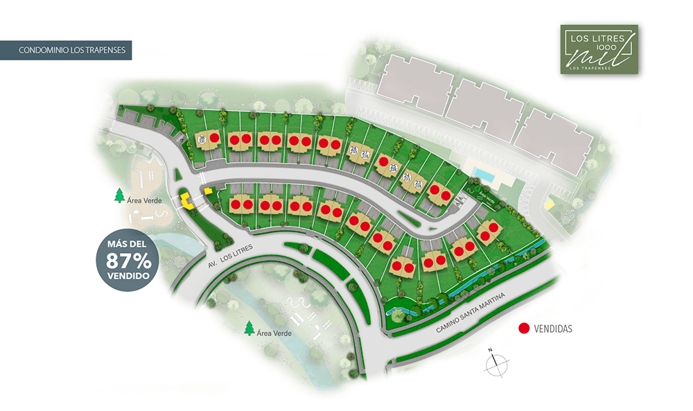 Los Litres 1000 es un exclusivo proyecto ubicado en un consolidado barrio de Los Trapenses muy cercano a colegios y servicios. Está conformado por casas de 140 m 2 y rodeado por un entorno natural con áreas verdes y senderos privados para disfrutar de la naturaleza en áreas de preservación.